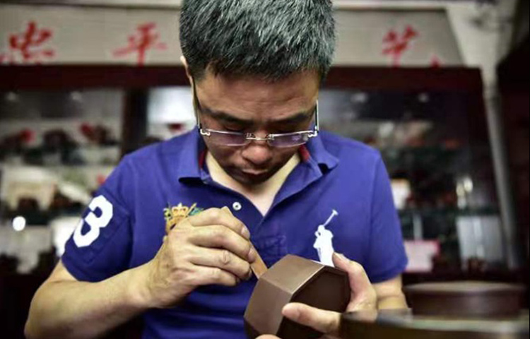 许忠平,1970年11月出生于宜兴市丁蜀镇制壶世家,1986年进入紫砂工艺厂,师承研究员级高级工艺美术师张红华,并受辽宁省工艺美术大师吴彬、鲍青、郭丽萍等多位大师指导,现在为高级工艺美术师。