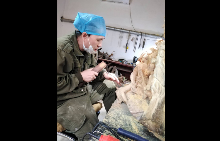 木枫,原名于占财,毕业于中央美院,在家乡随父学习木雕,后又拜浙江老艺人为师,作品在福建泉州获得金奖,北京崖柏展获得金奖等。