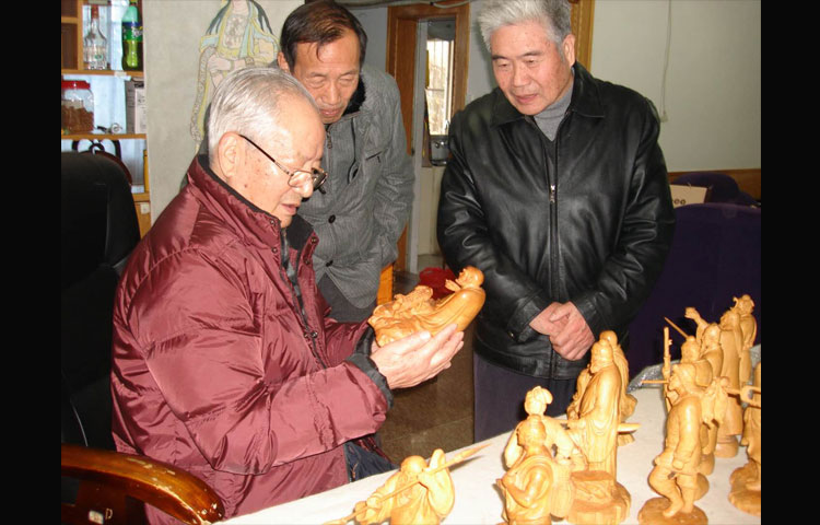 黄杨木木雕″十八罗汉",根雕"夕照鱼归"扬技观音",都得到展览金,银,特等奖。