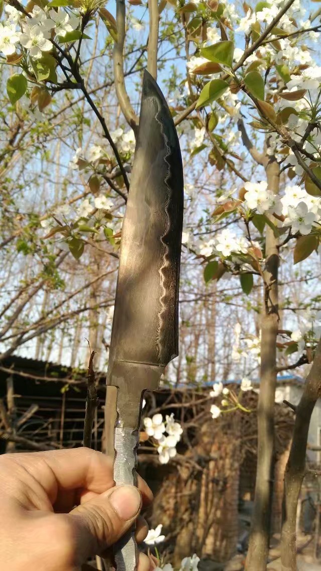 李老师受伤比较严重的情况就是在一次研磨的时候,右手的食指滑到了刀刃上,神经和韧带基本上被割断了,只能被迫停工三个月。在工作过程中,刀匠们小碰小伤都是常事,这样的情况更要求刀匠们必须极度的专心致志,特别是在开刃、研磨及雕刻工艺的工作过程中,呼吸和心态必须要调整到相对平衡、比较放松的状态,任何一个抖动和错刀都会将之前的努力化作尘埃。