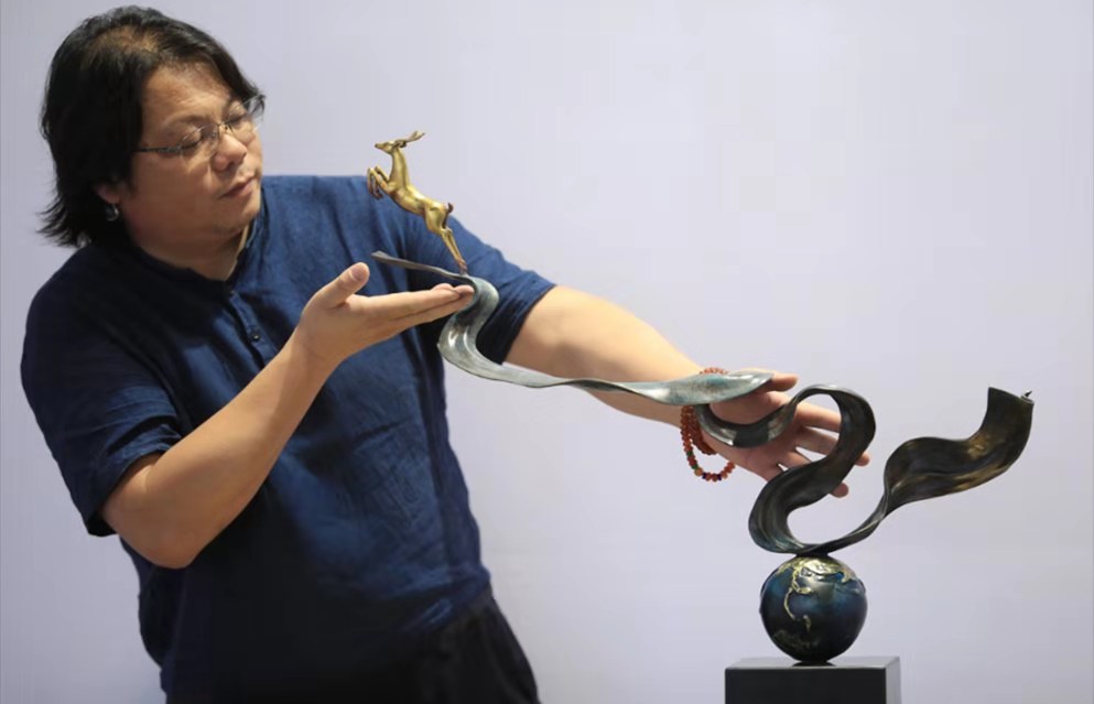 从接触到铜雕刻工艺,刘华发现将“铜”与“木”两种材质结合起来,既可以传承手工精细雕刻锻造的传统,又能创作出刚柔并济、韵味独特的艺术品。