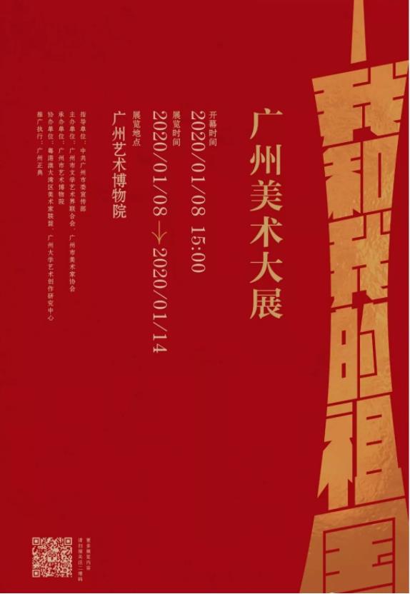 “我和我的祖国”——广州美术大展由中共广州市委宣传部指导,广州市文学艺术界联合会、广州市美术家协会主办,广州艺术博物院承办,粤港澳大湾区美术家联盟、广州大学艺术创作研究中心协办的“我和我的祖国——广州美术大展”于2020年1月8日在广州艺术博物院举行开幕式,延期展出至2月9日。