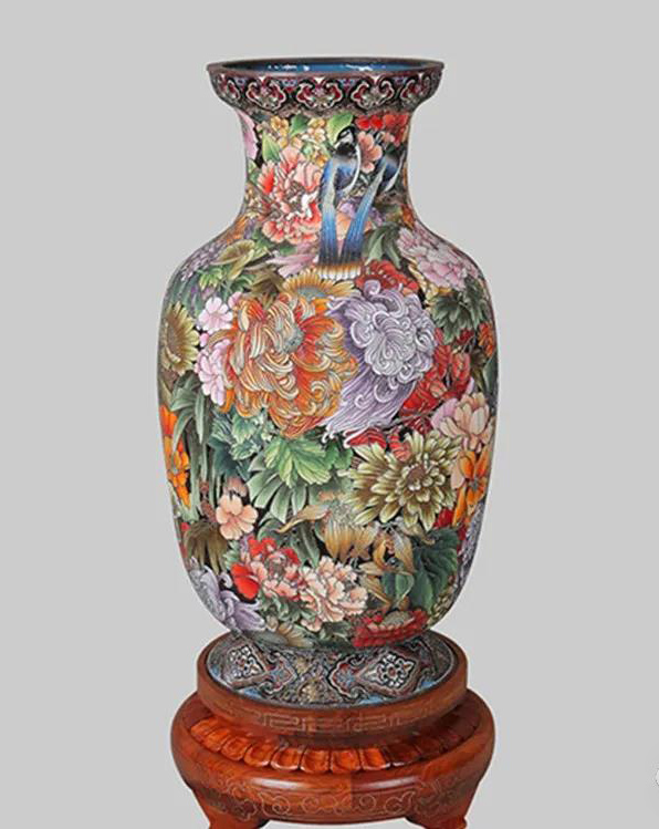 此作品多次荣获金奖。作品被誉为“百鸟之王”的绿孔雀、盛开的各色繁华、苍翠挺拔的树木、喜鹊等瑞鸟构成,吉祥如意,前程似锦,好运连连。整件作品构思精妙,技艺精湛,丝工设计严谨考究,将各色景物描绘的生动传神,将中国的吉祥文化与景泰蓝工艺相融合,构思精妙,独具匠心,给人端庄华贵,熠熠生辉之感。