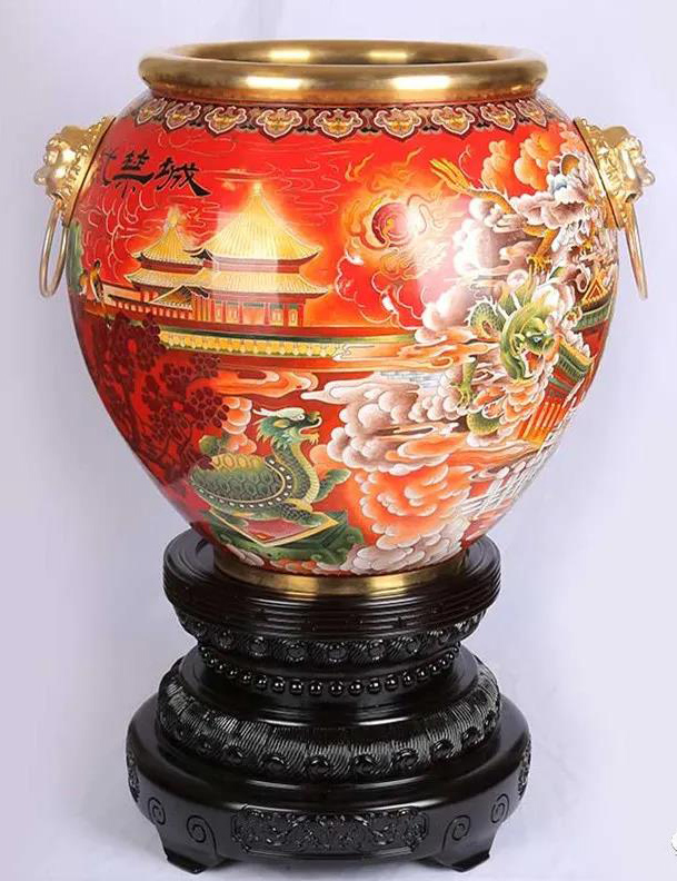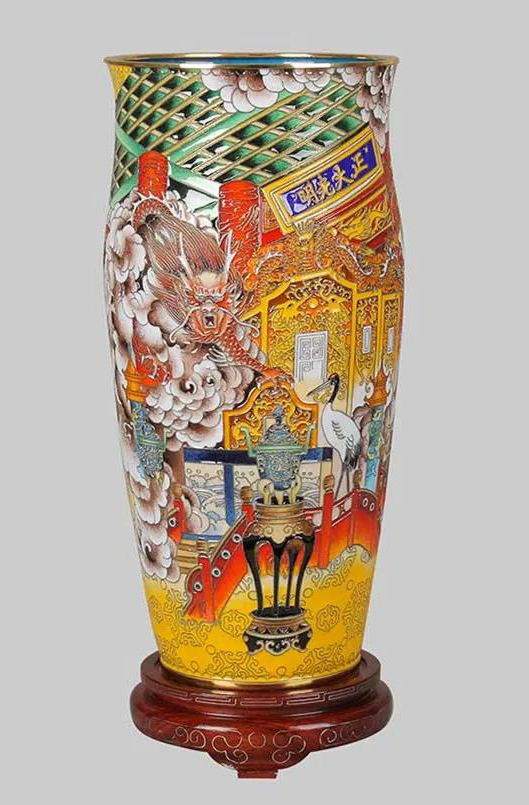 作品灵感来源于气势恢宏的皇家宫殿紫禁城。以紫禁城的亭台楼阁、雕梁画栋和翱翔在天空中的巨龙、仙鹤为元素,描绘了紫禁城的独特风景。作品以景泰蓝惊醒表达,将紫禁城的壮丽雄伟,皇家的高贵尊崇,一一呈现。作品造型简洁,构思精妙,独具匠心。