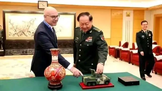 参加第三届“一带一路”峰会的塞尔维亚副总理兼国防部长武切维奇收到了中方三份礼物:华为Mate X5手机、红旗-17A防空导弹车模型和景泰蓝瓶。