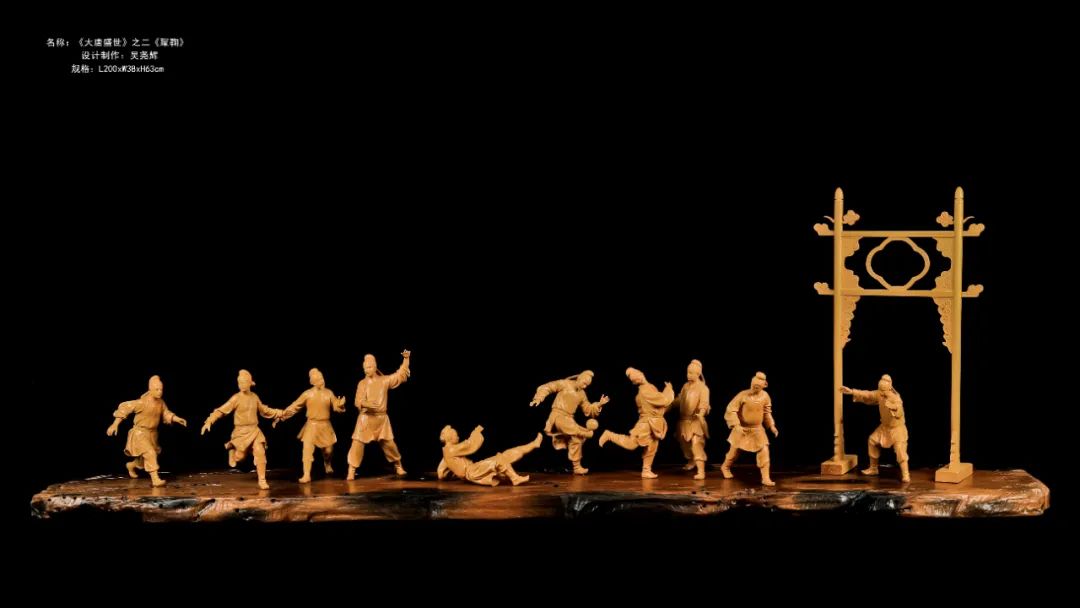 黄杨木雕《大唐盛世》之《蹴鞠》