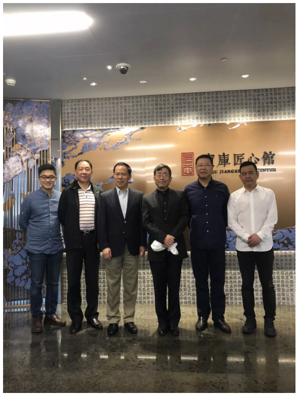 余秋雨(右三)和宝库匠心馆馆长叶柏风(右二)等人合影